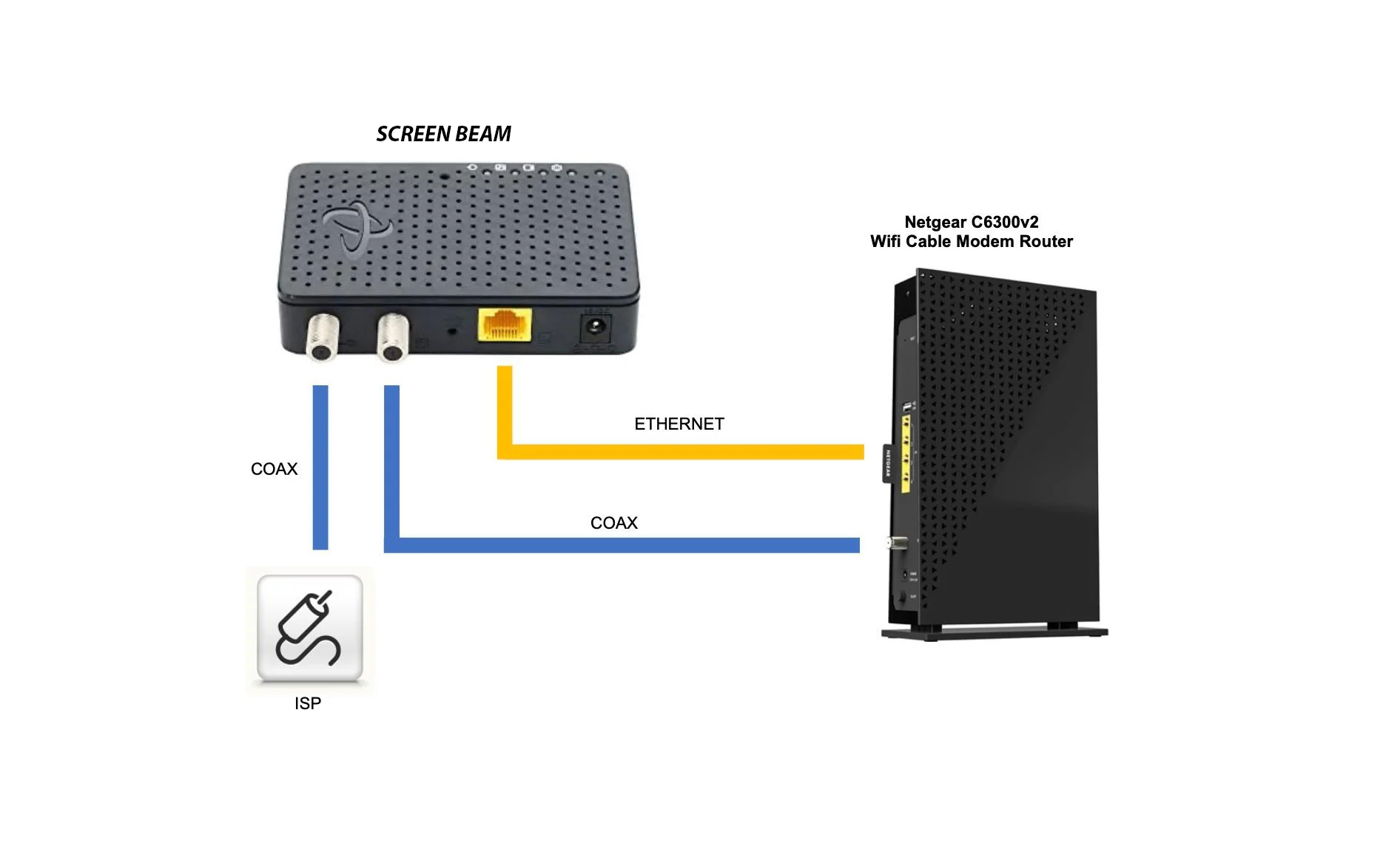 This way you can install a ScreenBeam MoCA with the Netgear Nighthawk AC3200 cable modem router and get a reliable and ultra high speed internet connection in your home.